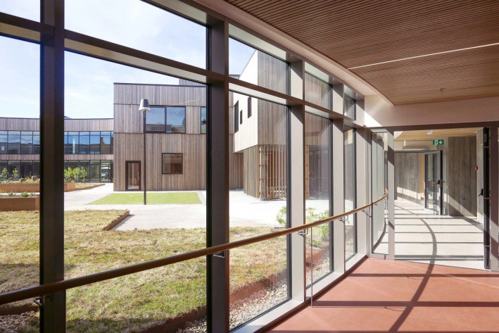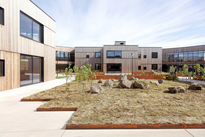 El edificio obtuvo una certificación BREEAM “Very Good”, y su planteamiento integra criterios de sostenibilidad tanto en el uso de materiales como en la relación con el entorno y en la propia concepción paisajística, incluida la cubierta ajardinada.